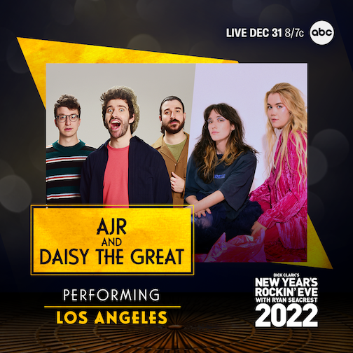 √ Indie pop group AJR will perform their three-times-Platinum hit “BANG!” and their Top 10 alternative single “Record Player” with duo Daisy The Great.