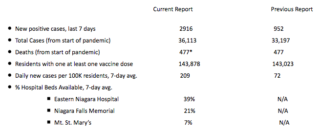 The Niagara County Department of Health issued the following weekly update on positive COVID-19 cases in Niagara County based on data from https://coronavirus.health.ny.gov/covid-19-data-new-york for the past week.