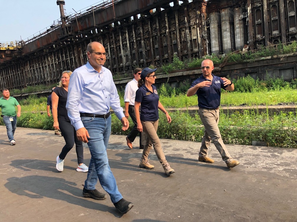 NYSDEC Commissioner Basil Seggos and then-Lt. Gov. Kathy Hochul tour the former Tonawanda Coke main plant site. (Photo courtesy of DEC)
