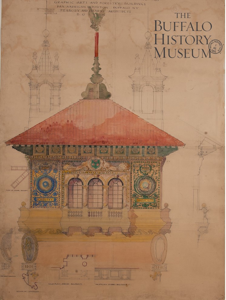 The renderings were originally not intended to last and were nearly discarded in the fall of 1901. Artist Carl Hirschberg – a colleague of Turner’s – salvaged them, recognized their historic importance as one of the few indicators of the exposition’s noted color scheme, and donated them to the Buffalo Historical Society to ensure their care. Hirschberg noted in a November 1901 letter to Society President Andrew Langdon that the paintings “will soon represent the only record of a great artistic success.”