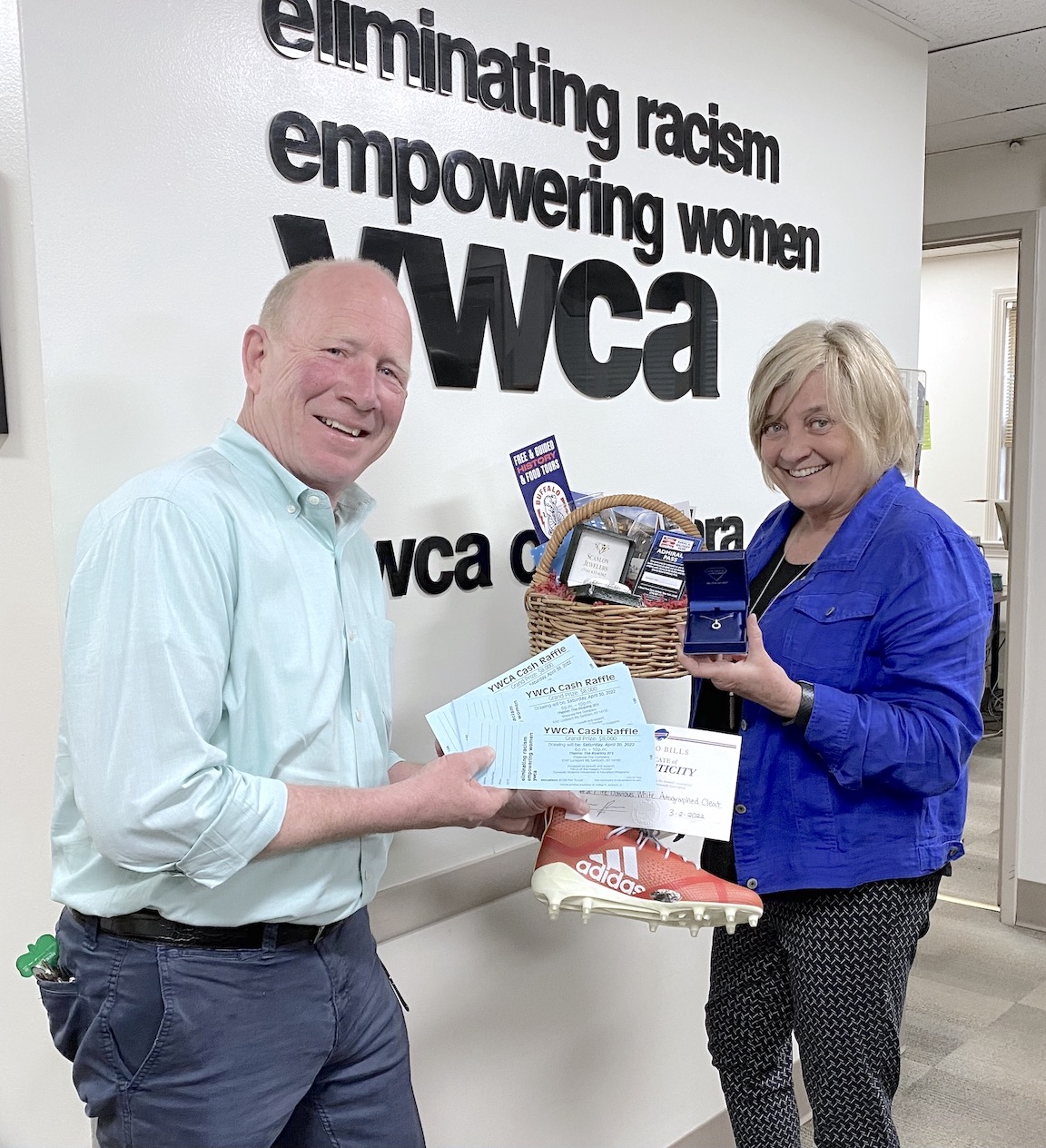 Steve Whalen of West Herr is shown with Kathy Jackson, YWCA vice president of housing.