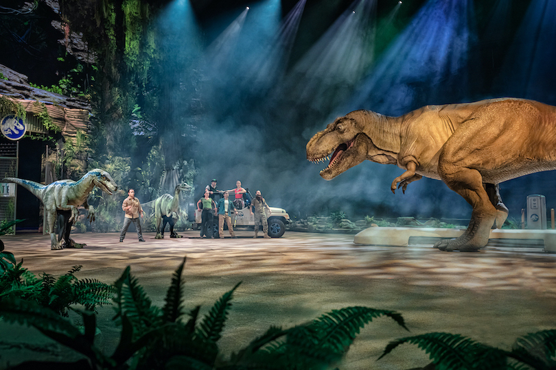 The press release continued, “With unrivaled arena production quality, ‘Jurassic World’ comes to life against a backdrop of captivating scenery where dinosaurs from the iconic franchise, including fan-favorite velociraptor Blue and a Tyrannosaurus rex more than 40 feet in length, take center stage. The production features more than 24 film-accurate, life-sized dinosaurs, with scale, speed and ferocity, operated by animatronics and performers.