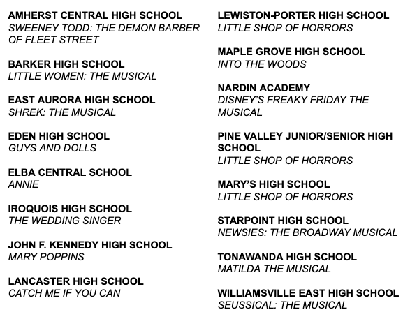 Shea’s Director of Arts Engagement and Education Thembi Duncan said, “We are thrilled that, after two years away from the stage, the Kenny Awards will be held in person. We can’t wait to celebrate not only the students, but the dedication and commitment of parents, volunteers and local businesses to making these productions happen.”