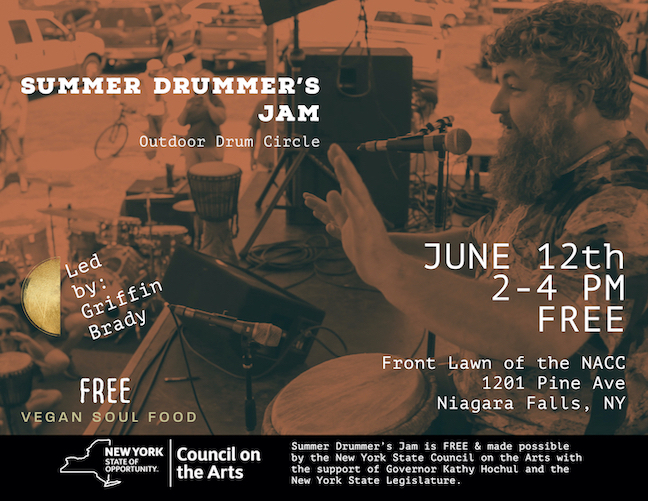 Organizers said, “Join our gian drum circle outside on the NACC steps led by The Slyboots School founder and educator Griffin Brady. Some drums will be provided, but we ask everyone to bring their own (or your laps for the taps)! This will be a part of our ‘Sonic Second Sundays’ music series.