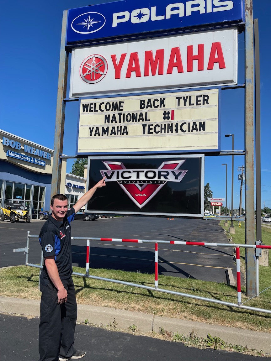 Yamaha Motor Corp. U.S.A. recently selected its top six outstanding motorsports technicians, taken from over a hundred applicants. These individuals were chosen based on Yamaha technical training gold certification scores, and went to Atlanta to compete. After days of grueling competition, the Yamaha Motorsports Group announced Tyler Schwartzott from Bob Weaver Motorsports & Marine Inc. in North Tonawanda finished on top. He is the winner of the 2022 United States Technician Grand Prix.