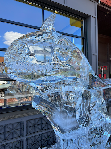 Produced by The Ice Farm, the 8-foot-tall bust of the cryolophosaurus began as eight 20-inch-by-40inch ice blocks and took two hours to complete. Attending guests and families enjoyed the new flavor and looked on as the sculpture took shape, and children made paper masks of the cryolophosaurus.