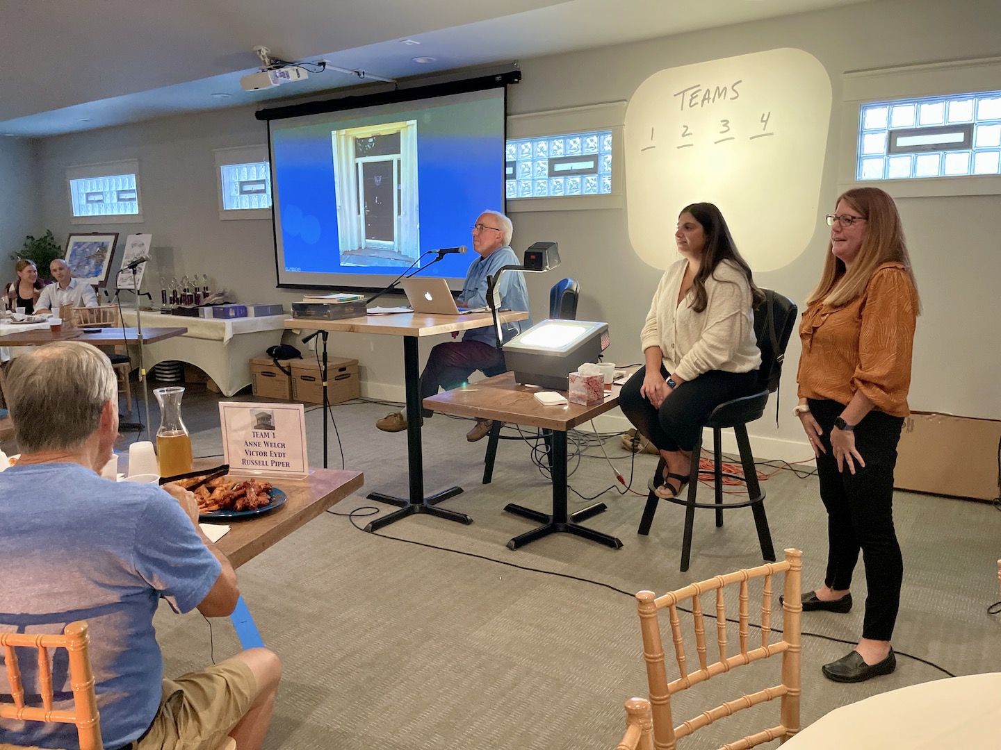 Simonson said, “It was a full house at the Brickyard last Thursday, when four teams competed for the top prize at the annual Historical Association of Lewiston’s ‘Jeopardy’ tournament. The fundraiser included questions for both the audience and teams, in addition to recognizing this year’s association’s award winners for community service and volunteerism. The Village of Lewiston team, composed of Mayor Anne Welch, Deputy Mayor Victor Eydt and Village Historian Russell Piper, were victorious in capturing the championship trophy.”