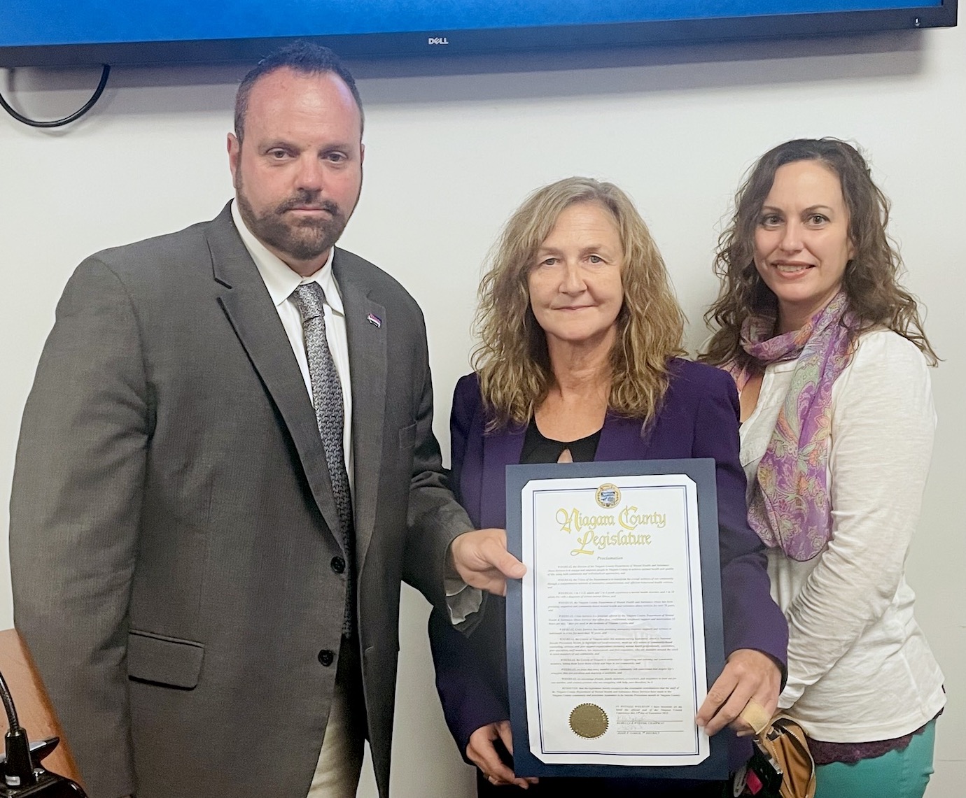 The Niagara County Legislature passed a resolution at its Tuesday meeting declaring September as “Suicide Prevention Month” in Niagara County. Earlier on Tuesday, the Suicide Prevention Coalition flag was hoisted at the Niagara County Courthouse in Lockport.