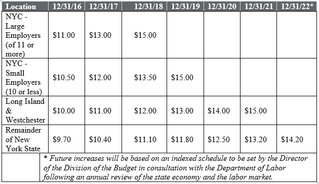 The New York State Department of Labor (NYSDOL) announced next steps in the state’s $15 minimum hourly wage phase-in. Commissioner Roberta Reardon issued an order calling for the minimum wage rate in counties outside of New York City, Long Island and Westchester to rise by $1 per hour, from $13.20 to $14.20, following a statutorily required economic analysis conducted by the New York State Division of the Budget (DOB).