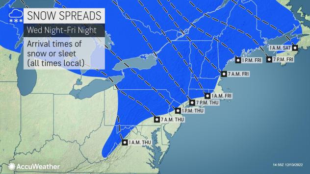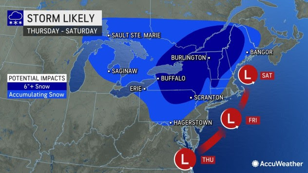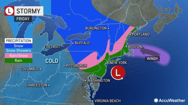 "A storm will develop near southeastern Virginia on Thursday, track just off the New Jersey coast on Friday and finally spin near southeastern New England on Saturday," AccuWeather Meteorologist Mary Gilbert said. The positioning of the storm will allow cold air from Canada to be pulled south into the Northeast and help produce a widespread snowfall for a large part of the region, she added.