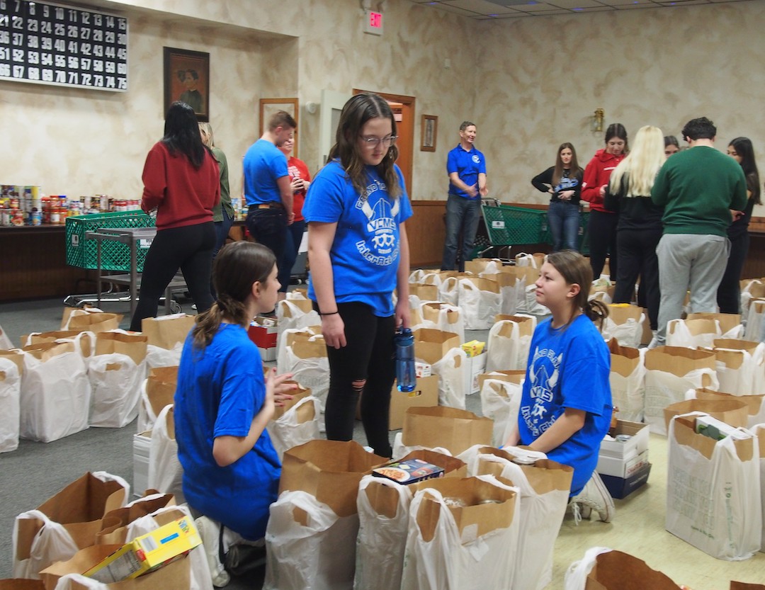 Students and staff from both schools came together to sort and organize the food, as well as fill the bags on Dec. 8 at the Knights of Columbus, 1841 Whitehaven Road.