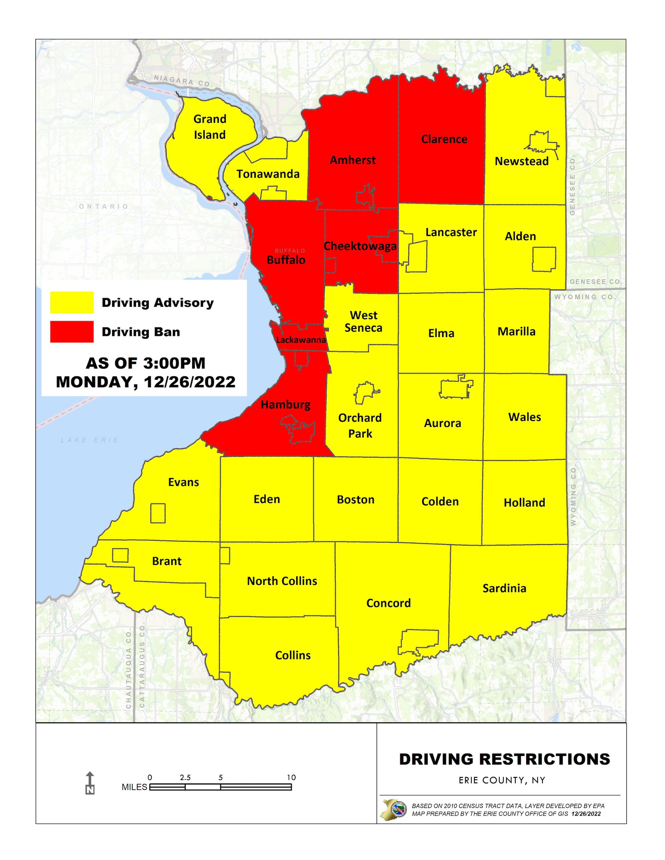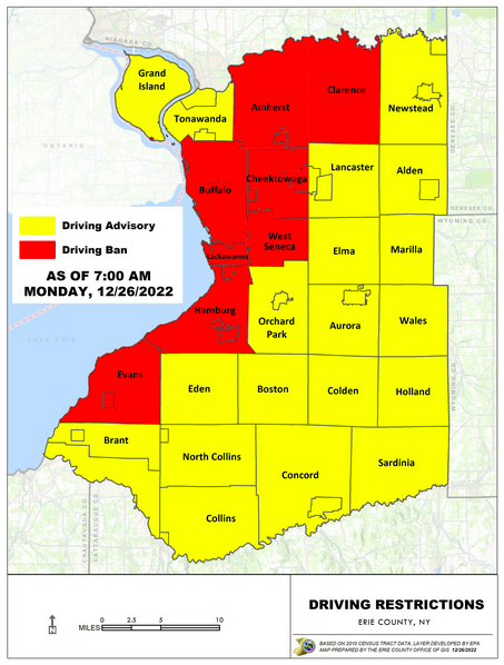 UPDATE: Erie County Executive Mark Poloncarz tweeted an updated travel ban/advisory map.