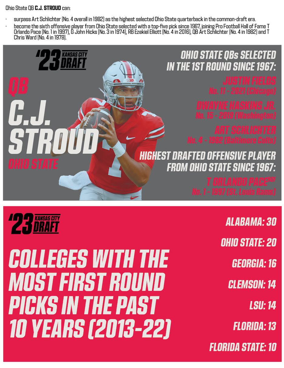 ESPN’s longstanding tradition of presenting the NFL Draft, dating back to 1980, continues as The Walt Disney Company will present the 2023 NFL offseason’s signature event from Kansas City across ESPN, ABC, ESPN Radio, ESPN Deportes and ESPN’s social media platforms over the course of the Draft’s three days (April 27-29). Combined with ESPN’s studio show offerings, more than 30 hours of live programming will originate from the home city of the reigning Super Bowl Champions throughout the NFL Draft.