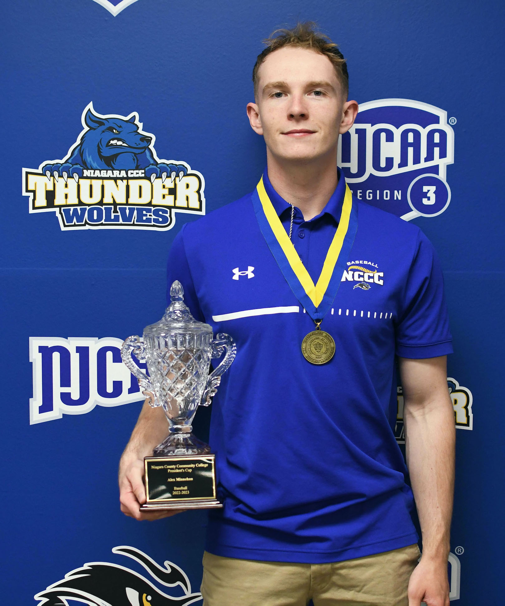Minnehan will graduate with two associate degrees. In addition to earning the Chancellor’s Award, he was presented the President’s Cup at NCCC’s Thunderwolves Awards Night on May 3. This is the most distinguished award in NCCC intercollegiate sports, and recognizes both athletic and academic achievements. Alexander not only maintains a 3.7 grade-point average, he also leads an active campus life and has earned several prestigious baseball honors. He was proud to represent NCCC as a coach at the Livingston County Baseball Camp and serve as a tutor on campus. Alexander’s professors and coaches wrote he is a “Remarkable, dedicated, intelligent student who has excelled in class and on the field while being a positive role model to his teammates and classmates.”