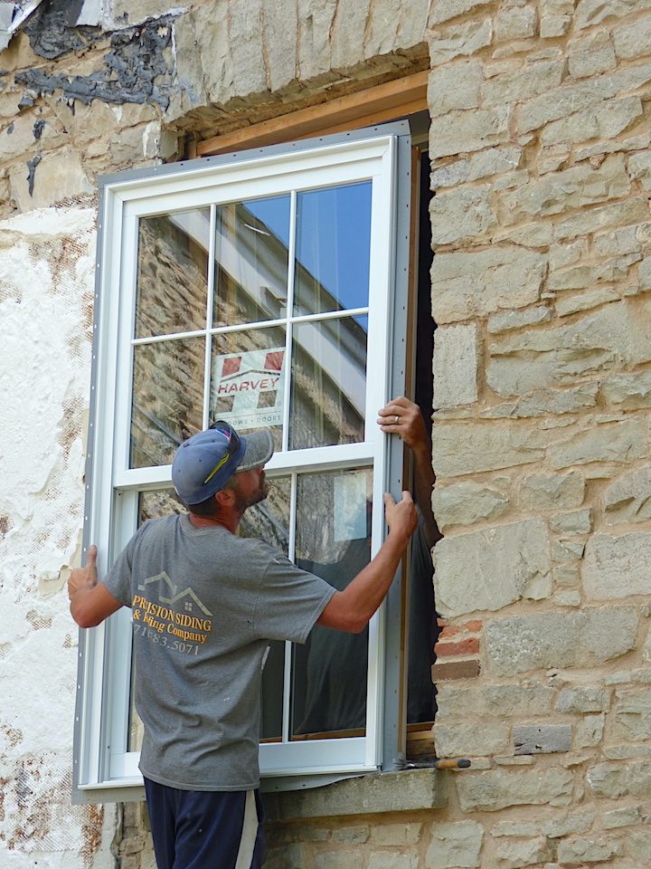 Reconstruction work has ramped up at the Village of Lewiston’s crown jewel, with the addition of Harvey Windows + Doors casements at the Frontier House.