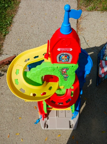 The second illustration is a Fisher Price toy. Its location was in Lasalle. The plastic track circled its way to the bottom of the castle where the boys and girls owned a grocery shop. They played happily together.