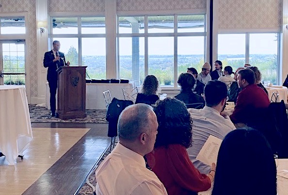Dr. Krieg Tidemann addresses the crowd at the Everett W. Ockerman recognition luncheon.