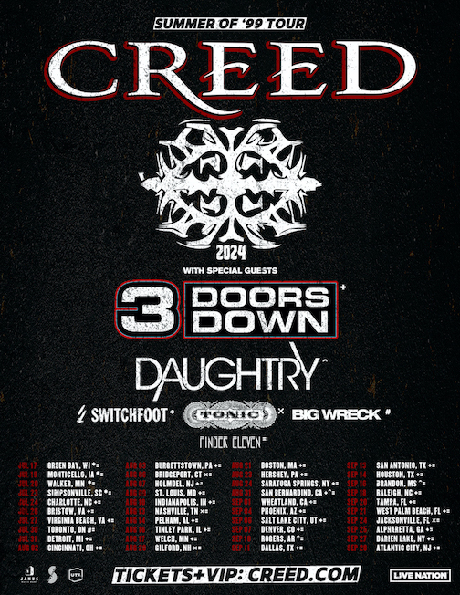 Creed, the multi-Platinum, Grammy and American Music Award-winning rock band, is thrilled to announce their eagerly awaited 2024 “Summer of ’99 Tour.”