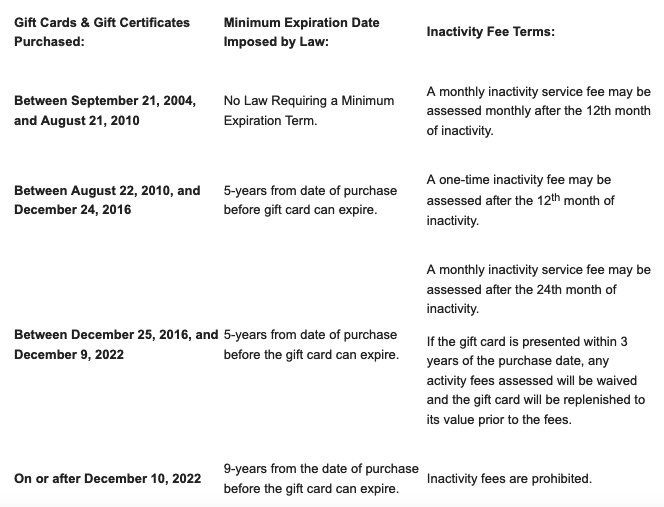 In New Yok state, a gift card or gift certificate’s purchase date determines what, if any, rights exist for consumers. Based on the purchase date, consumers can expect the following legal protections: