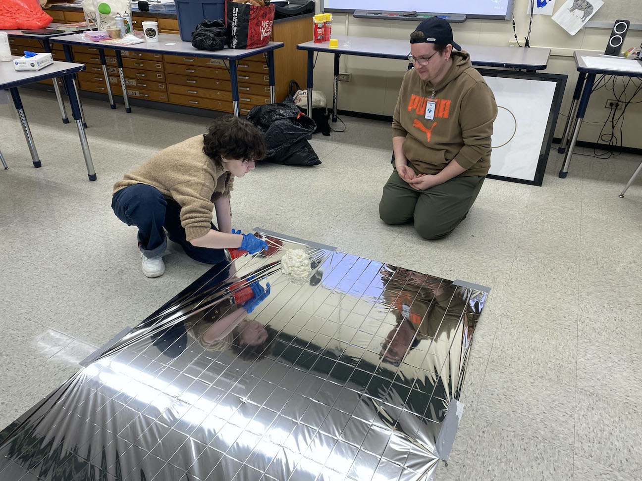 Artist Dana Murray Tyrrell works with student Azzy Stalvey. (Submitted photo)
