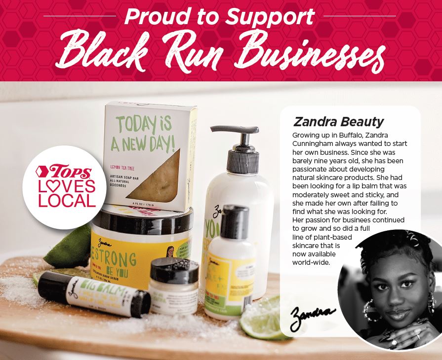 To learn more about Zandra Beauty, visit www.zandrabeauty.com or look for her products at select Tops stores.