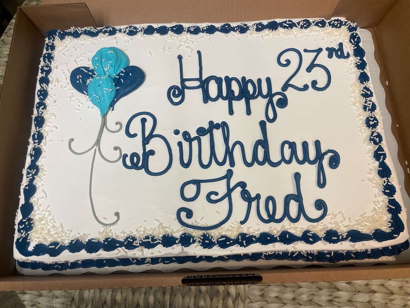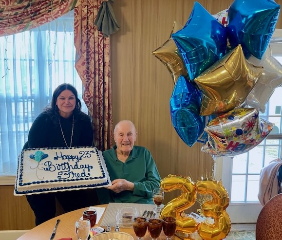 Elderwood Residences at Wheatfield staff and residents surprised him with a “Happy 23rd Birthday” cake in the dining room.