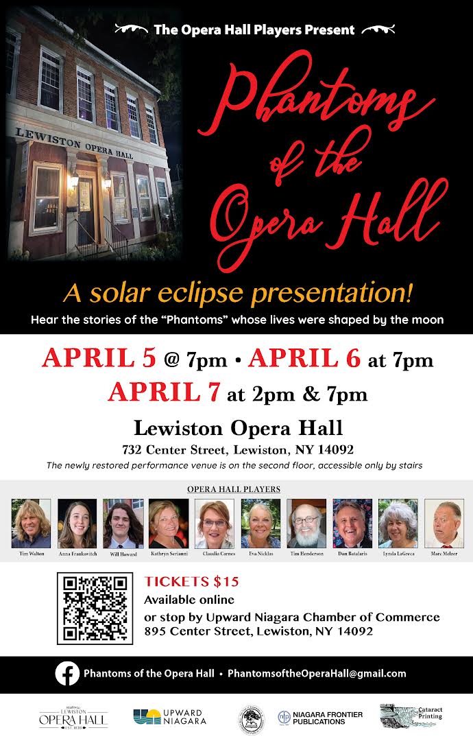 On April 8, there will be a total solar eclipse – one of the most spectacular events in nature – and Lewiston is in the direct path of totality. To commemorate this event, the Opera Hall Players, who formerly presented the Marble Orchard Ghost Walks, have been rehearsing to a brand-new show: “Phantoms of the Opera Hall.”