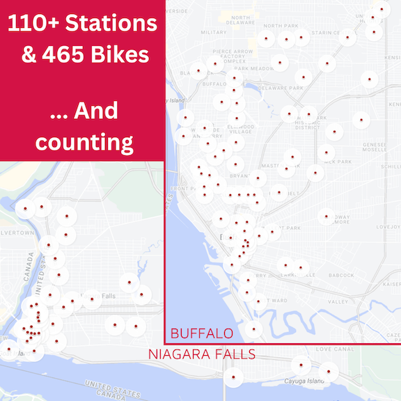 The solar eclipse week is expected to make for a big kick-off bump in bikeshare trips. Last year, Reddy Bikeshare users logged 51,872 trips, an all-time record in the system. It was a 9% increase from 2022, which held the record prior. Credit for the record number of trips is given to ongoing investments in bike-friendly, safer streets; the revitalization taking place in Buffalo and Niagara Falls; and the Reddy Team’s ongoing efforts to expand the footprint of bikeshare and discount the cost on users. The Reddy team expects 2024 to break the trip record with the inclusion of Reddy+ Bikes in the fleet.