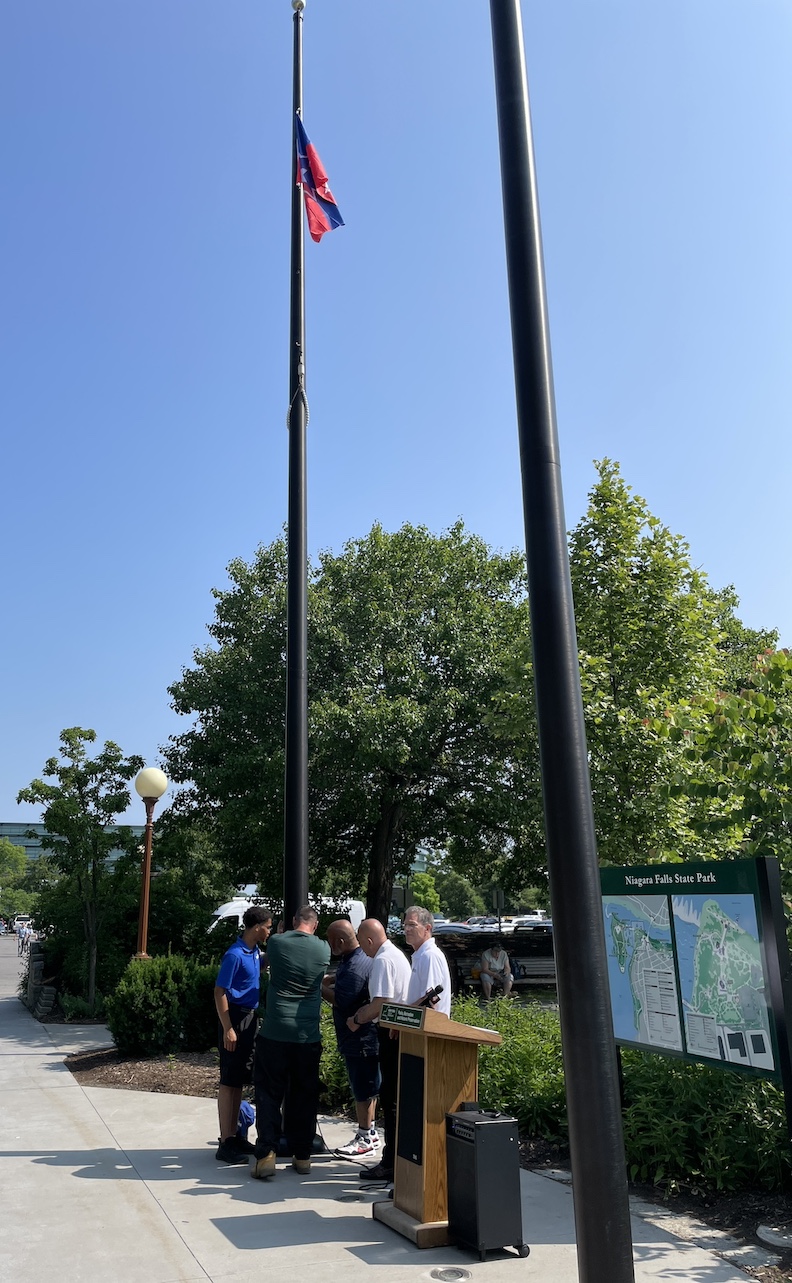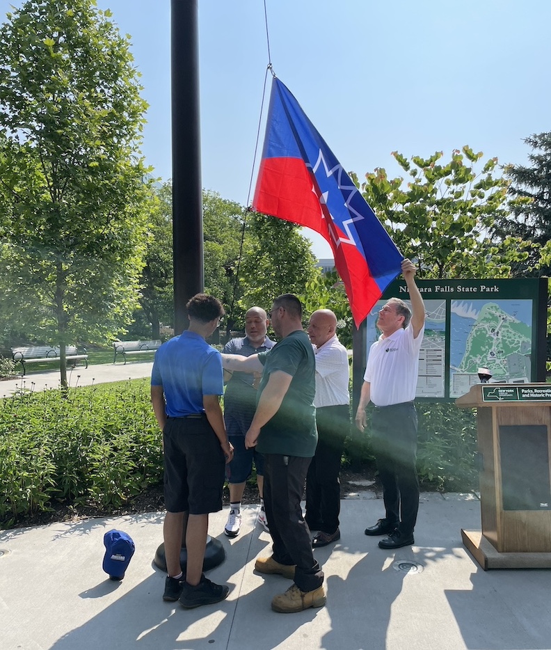 Representatives from Niagara Falls State Park and the 5th Annual Niagara Falls Juneteenth Festival committee joined together Friday to raise the Juneteenth flag outside of the welcome center plaza.