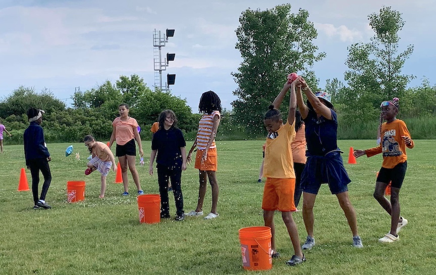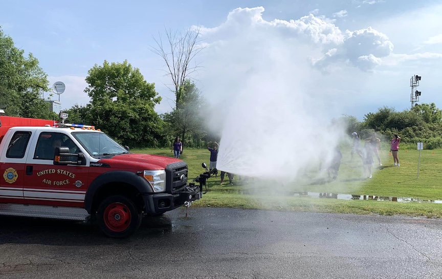 The students and staff beat the heat and stayed cool with help from a visit by the Niagara Falls Air Force base's fire truck, cooling stations, snow cones, and, of course plenty of water!
