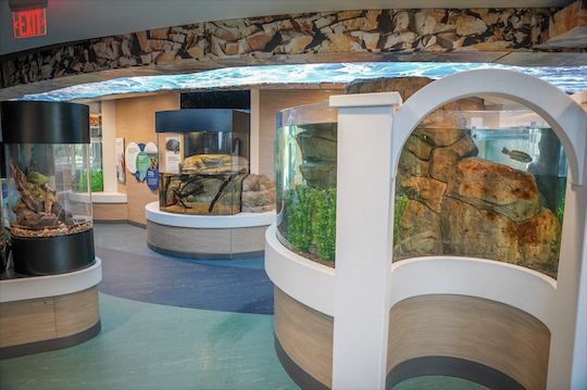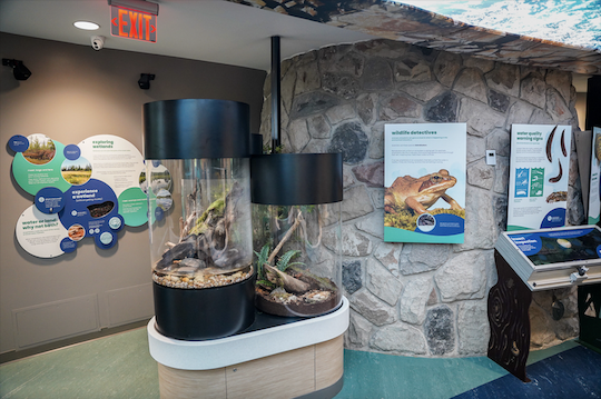 The $5.2 million Great Lakes 360 project’s accessible exhibit design transformed the building into a one-stop destination where visitors of all ages and abilities can experience the ecological story of the region all year round. The 16 new interactive exhibits feature turtles, amphibians, insects, and many species of fish, representing the diverse ecosystems of the Great Lakes.