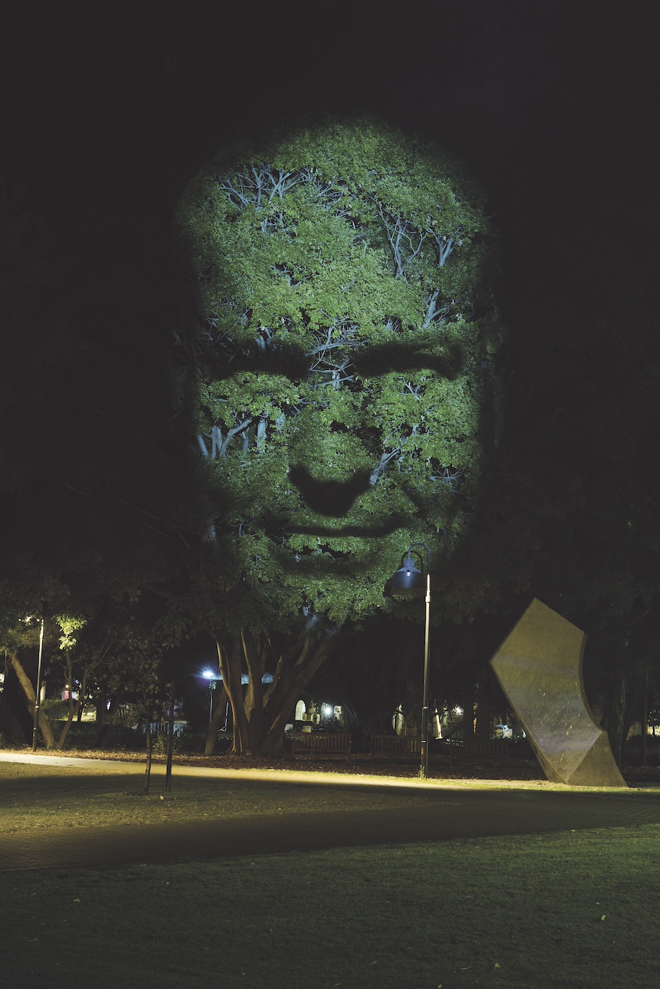 “Monuments” is a site-responsive, outdoor video installation that has been realized across Australia and internationally. Since the first tree projection in 1993, “Monuments” installations have continued to evolve and captivate new audiences as they occupy new landscapes and engage with different communities. The video installations evoke a haunting synergy between the human form, natural environment, and the act of viewing. Nighttime projections transform trees into sculptural monuments, surveying the immediate environment.