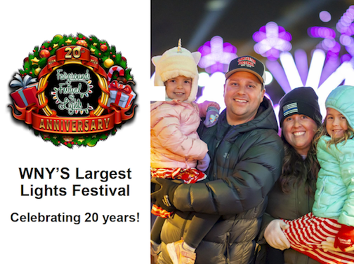 The Fairgrounds Festival of Lights returns this holiday season with dazzling light displays and festive fun for all ages! Entering its 20th year, the Festival of Lights is Western New York’s largest light show, featuring over 70 light displays. The ticketed event is open select dates throughout November and December, opening Nov. 29.