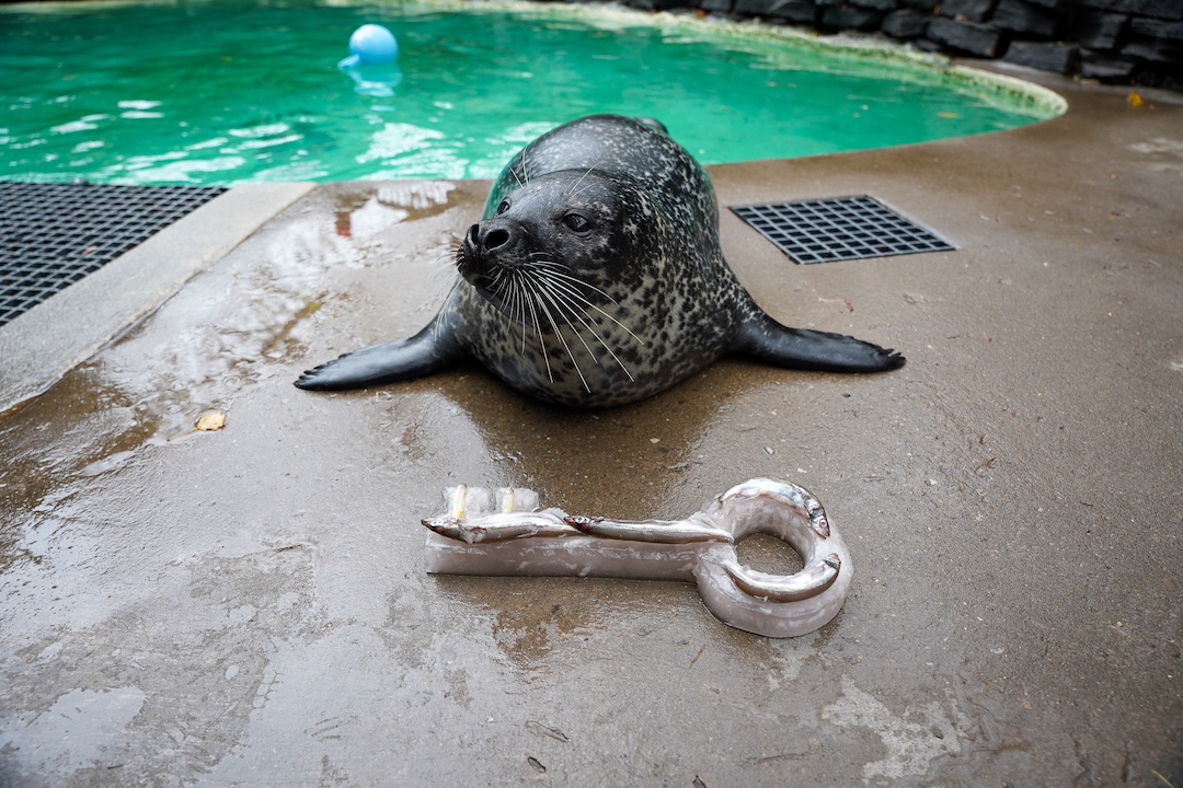 Stryker knows something about weather as he, along with the Aquarium’s other rescued seals, spend winters in their comfortable outdoor habitat where they naturally adapt to all kinds of extreme weather conditions. He has also gone four-for-four in his annual weather predictions, with Western New York experiencing a milder, cold winter in 2020; a frigid one in 2021 and 2022; and another mild, cold winter last year, marked by above-average temperatures and below-average snowfall totals.