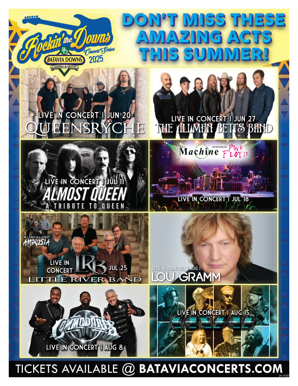 “I’m excited about the 2025 summer concert series at Batavia Downs, especially with legendary bands like Kansas and the Commodores coming here for the very first time,” Brown said. “The concert series at Batavia Downs has quickly become a Western New York summertime destination. I want to thank the board of directors for approving the concert series, and I look forward to seeing all our fans starting in June.”