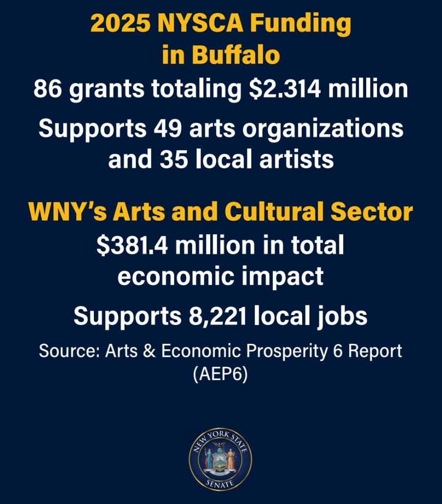 Mallin said, “The continued support from the governor and Legislature is a testament to their dedication to the importance of our sector, which is critical to the health of our communities and economy. In my travels across the state, I have had the privilege of experiencing first-hand the boundless creativity and world-class artistry of Western New York. From our artists to organizations of all sizes – our unparalleled creative sector is what makes New York the global epicenter of arts and culture. Congratulations to all the grantees, we look forward to all you will accomplish for New York state.”