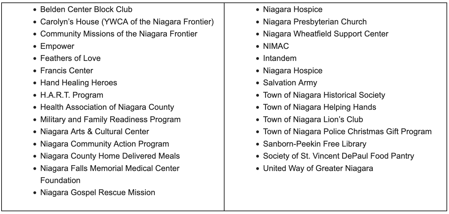 “There are many vital community organizations that are in need of additional support,” Town of Niagara Supervisor Sylvia Virtuoso said. “We’re pleased to continue our partnership with the Fashion Outlets to help these organizations year after year.”