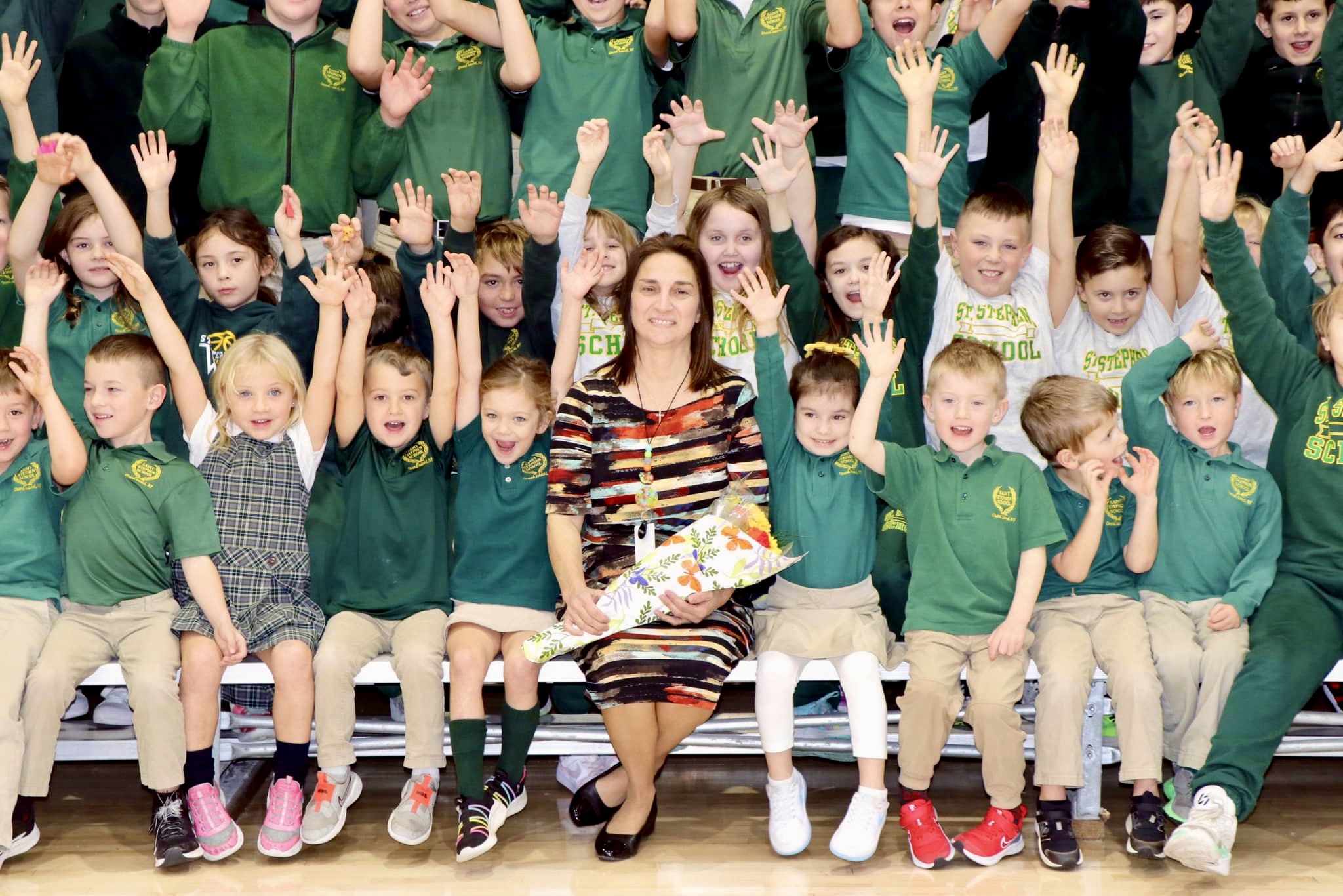 On Thursday, Nov. 21, we were blessed with a surprise visit from the Education Foundation of the diocese and the Education Department. They came for a special visit to award our principal, Mrs. Lynn Ortiz, with the Distinguished Principal Award for the diocese, in a special assembly in which all our students, faculty, staff, Mrs. Ortiz, her family, and our parish staff were able to join in on this momentous presentation.