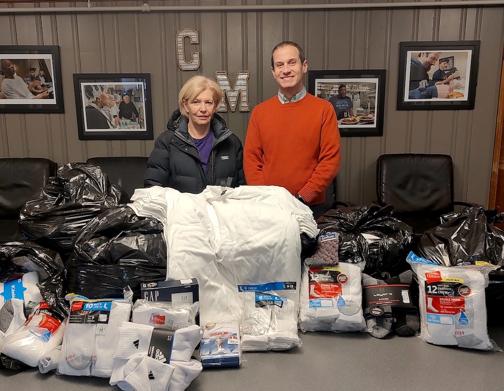 The second photo is Rotarian Eloise Olmstead with Christian Hoffman of the Community Missions in Niagara Falls.