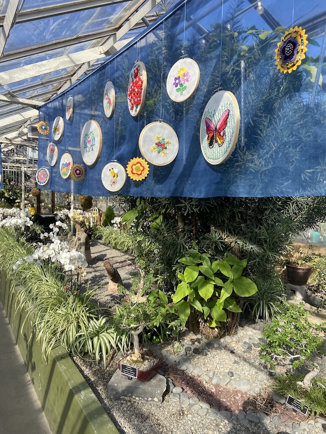 The Buffalo and Erie County Botanical Gardens and Stitch Buffalo have teamed up for “Pollinators and Flowers from Around the World,” a handcrafted textile art exhibit made of embroidery hoops with floral and pollinator motifs. The exhibit is open daily from 10 a.m. to 4 p.m. now through April 28.