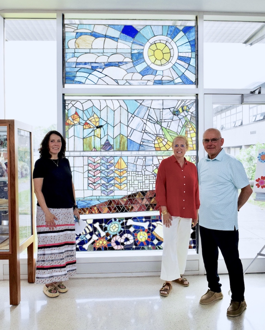 For the past three years, Niagara Wheatfield Central School District Art teachers Tracy Bloom and Jamie Gilbert have been collaborating on a stained-glass piece as part of their curriculum. It was designed to help students – many of whom were coming from the Tuscarora territory – feel more connected to the school community. The teachers looked at the mural project to bring all the students together, fostering unity and a sense of belonging.