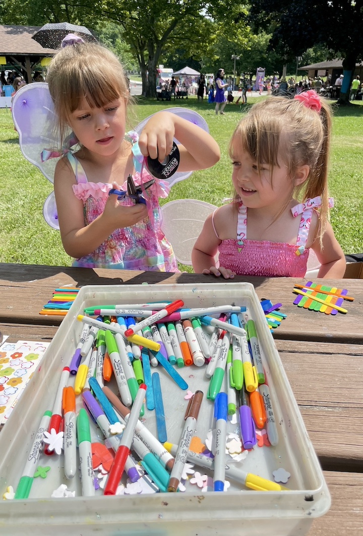Artpark & Company Director of Education and Interpretation Tanis Winslow said, “People have the opportunity to sip fairy tea from fairy artist-thrown ceramic cups and take them home. There is a host of art activities like fairy doors and potions. Patrons are welcomed into the fun by creating wearable mushroom caps (hats) and wings so that they can dress like the fairies. Typically, people – young and old – come dressed in their fairy best. I have even seen dogs in a wagon wearing fairy wings.