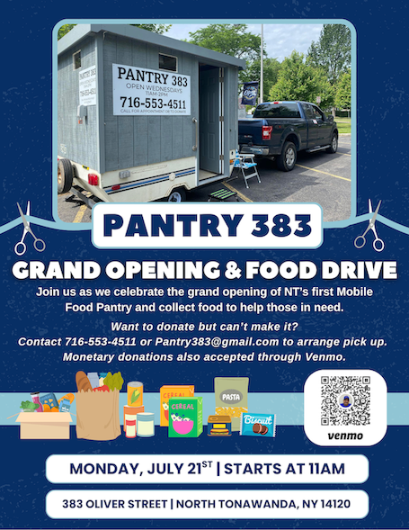 A new era of community giving rolls into action with the grand-opening and ribbon cutting ceremony at Pantry 383’s mobile food pantry from 11 a.m. until 2 p.m. Monday, July 21, at its standing location at 383 Oliver St. Founded by North Tonawanda resident Al Baker, Pantry 383 began in November 2023 as a stationary dry pantry and fridge. Now, thanks to local support and continued dedication to serving others, the pantry is hitting the road.