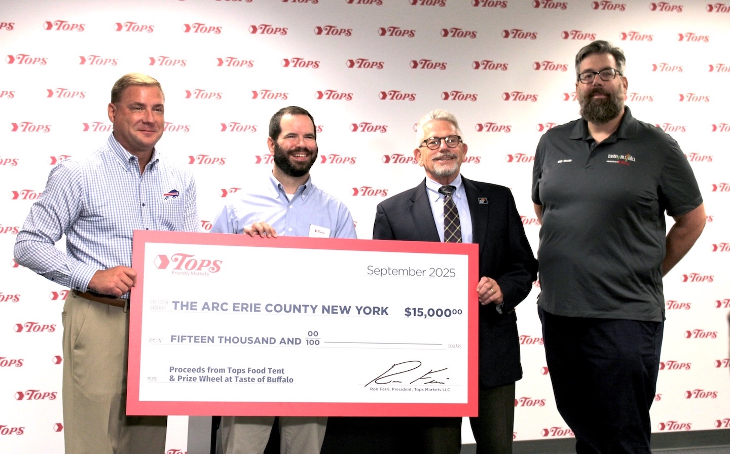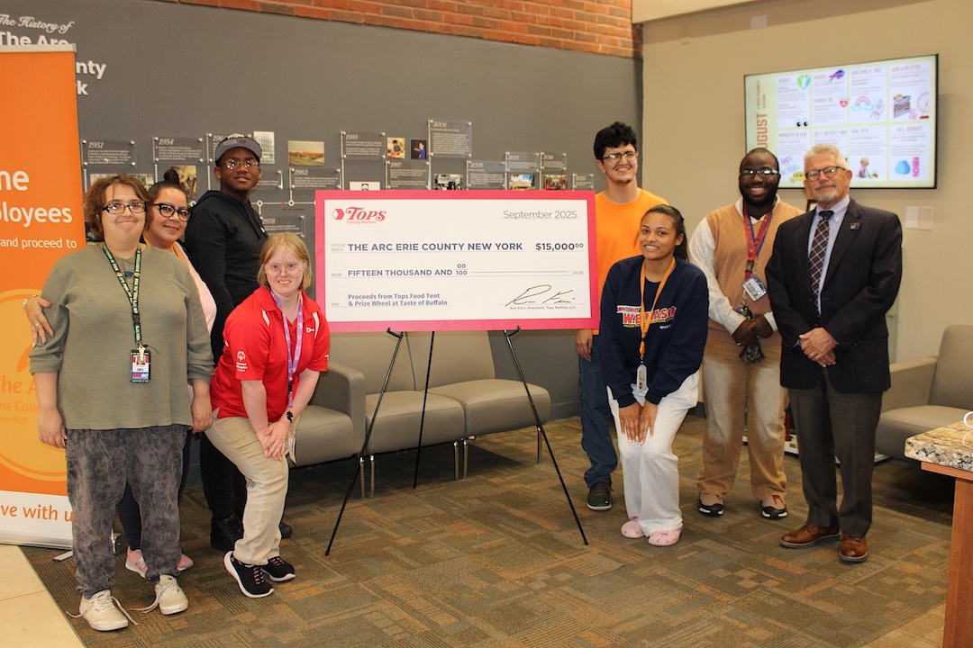 Last week, Tops presented Arc of Erie County New York with proceeds from the 2025 Taste of Buffalo Tops tent and prize wheel. While the proceeds amounted to just over $13,000, Tops rounded up the donation to $15,000 for this organization, which does so much for the greater community.