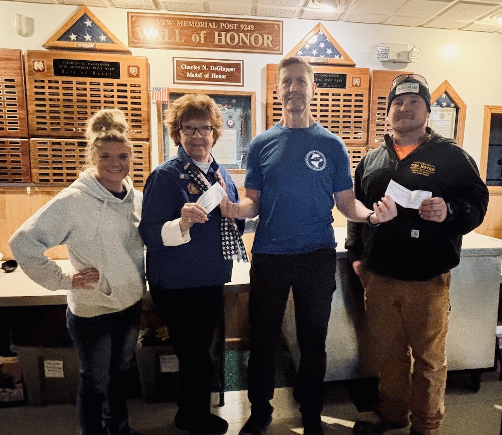 Pictured: Autumn Spinella, VFW Auxiliary member; Kathy Blake VFW Auxiliary president; David Conboy, Neighbors Foundation president and VFW life member; and Tom Morgan of Top Notch Sewer and Drain Cleaning Inc.