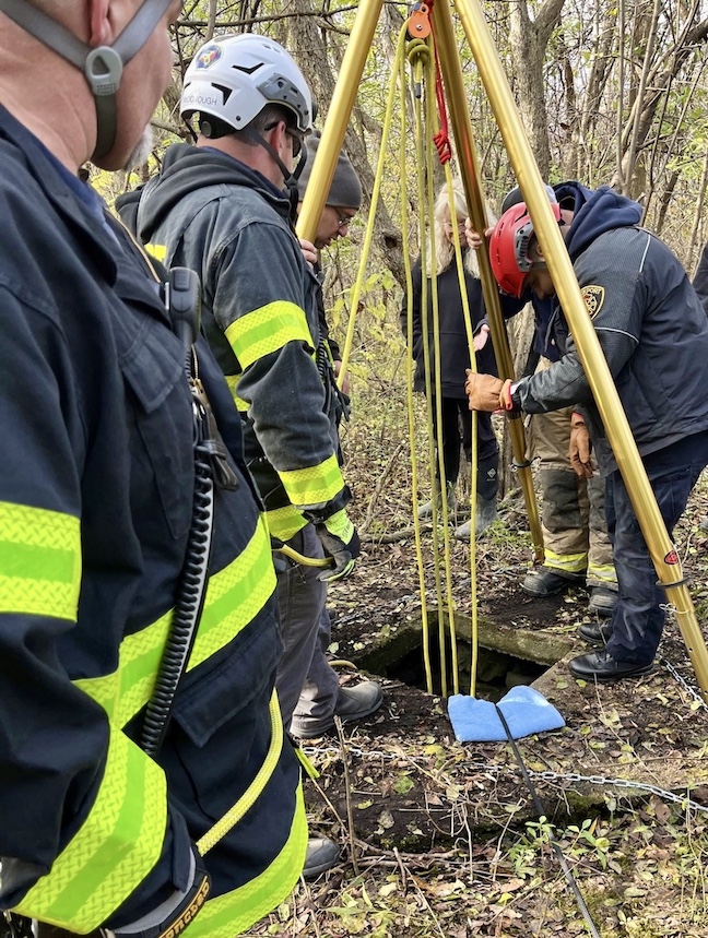 Emergency crews rescue a deer trapped down a 10-foot-deep dry well in Niagara County. (Submitted photo)
