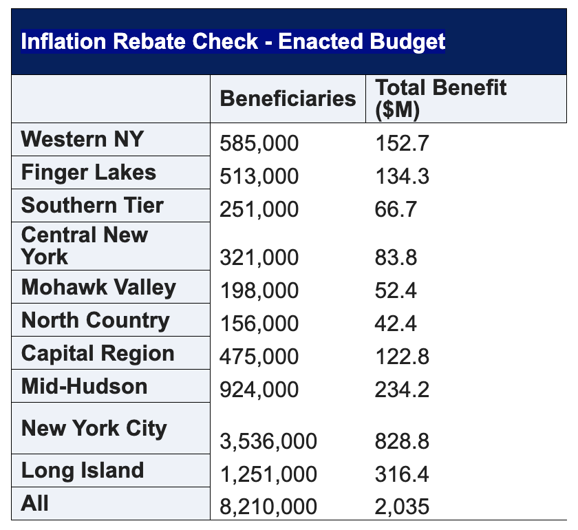 For additional information on the governor’s affordability agenda, see: https://www.governor.ny.gov/programs/making-new-york-state-more-affordable. For additional information inflation refund checks, see: https://www.tax.ny.gov/pit/inflation-refund-checks.htm.