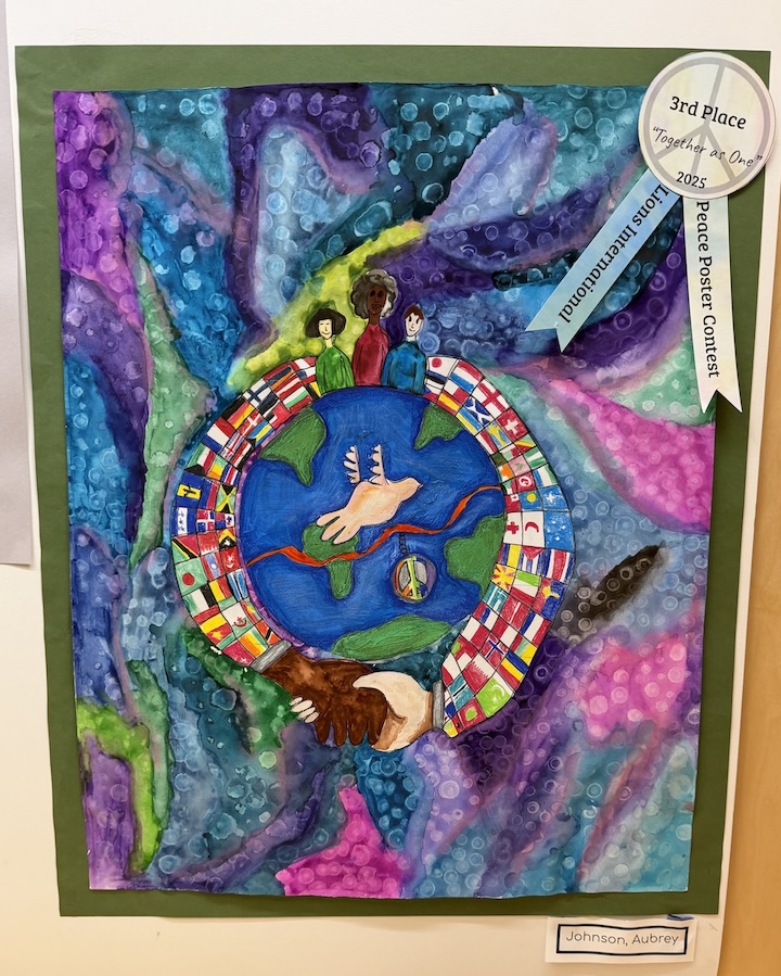 Lion Regina Cecconi said, "Each year, Lions around the world invite young people to share their vision of peace through art. This year’s theme, ‘Together As One,’ reminds us that peace grows when we work side by side – when we listen, care, and find common ground despite our differences.