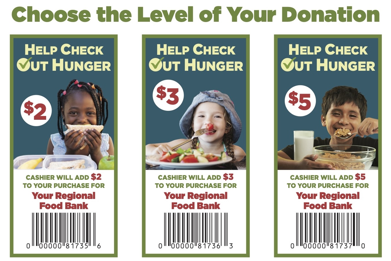 The following food banks will benefit from this year’s “Check Out Hunger” campaign:
