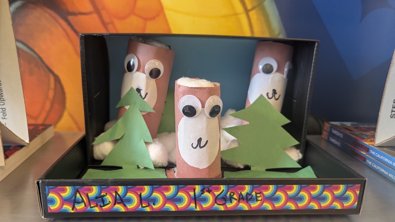 In addition to book shopping, students participated in several themed activities to highlight imagination and academic enrichment. They were invited to create forest dioramas depicting either realistic woodland scenes or enchanted forests. Projects were displayed throughout the fair, turning the space into a student-created woodland gallery. Every participant took part in the beloved “Lollipop Pull,” where prizes include free books.